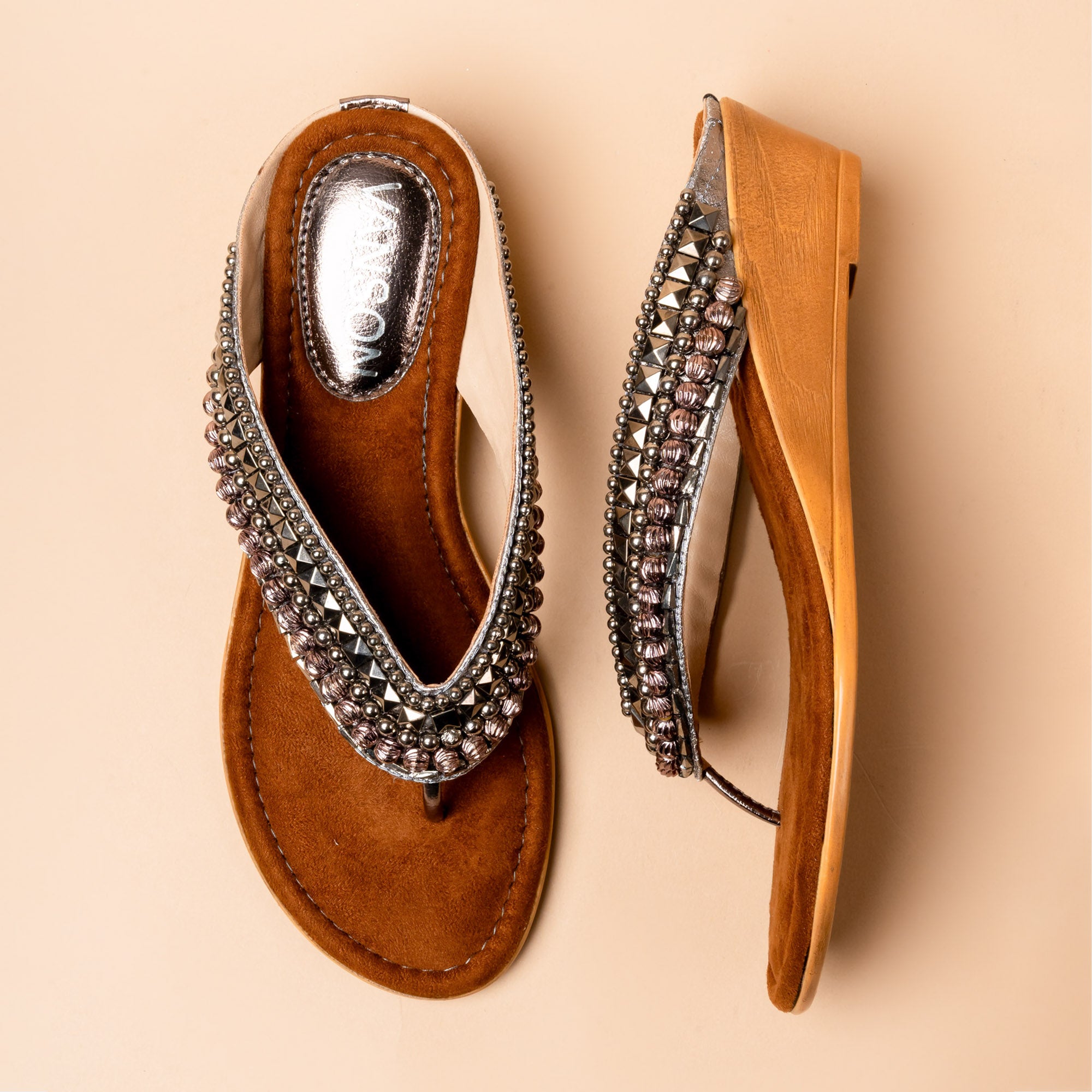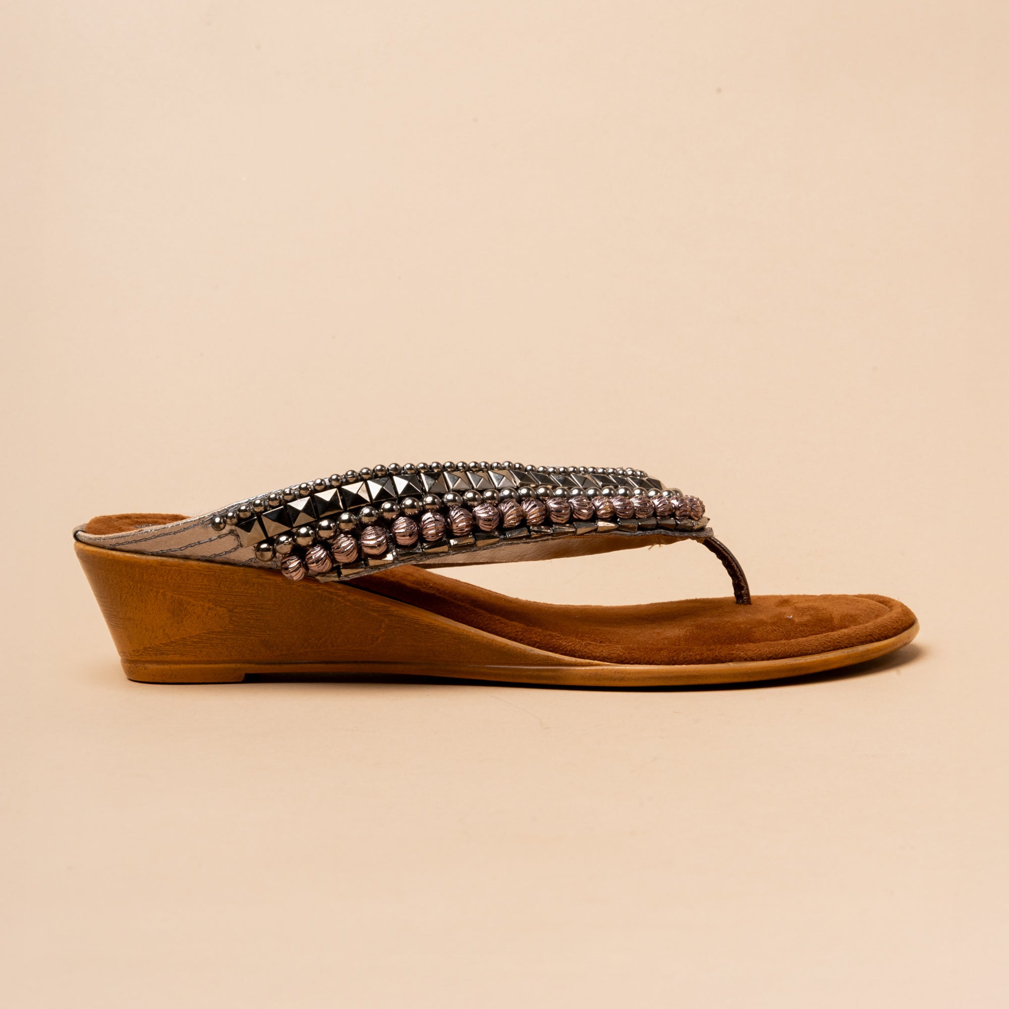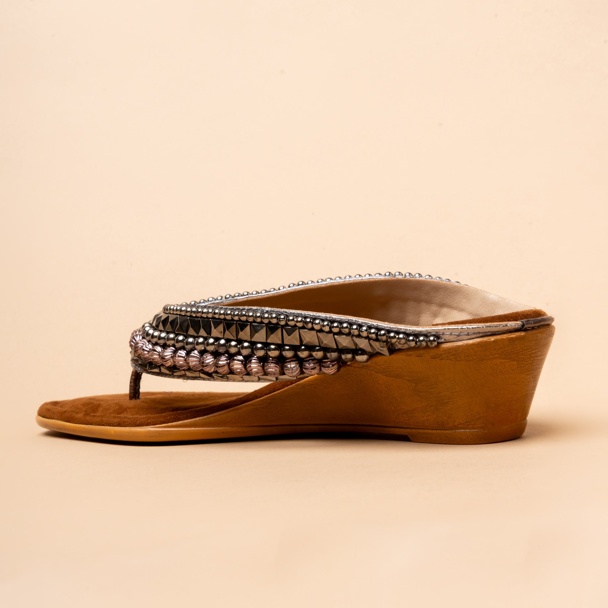 Antique Crest Embellished Ethnic Festive Wedge in rust