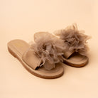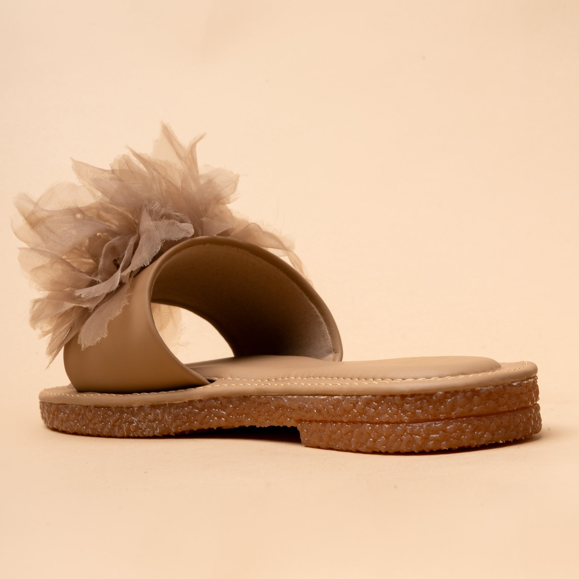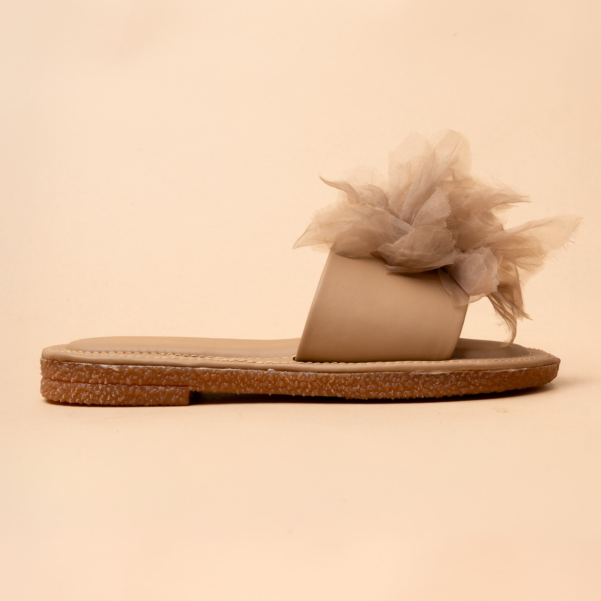 The Bloomer Flats in pastel pink, white and brown are adorned with oversized tulle flowers. With extra comfort base, the slipper can roll and bend showcasing flexibility and bounce as we step into the comfortable pair. Romantic and whimsical, they’re perfect for brunches, summer parties, or festive outings. Pair them with dresses or Indo-Western looks for playful elegance. The home sliders you need for your daily chores looking fresh and cute.
