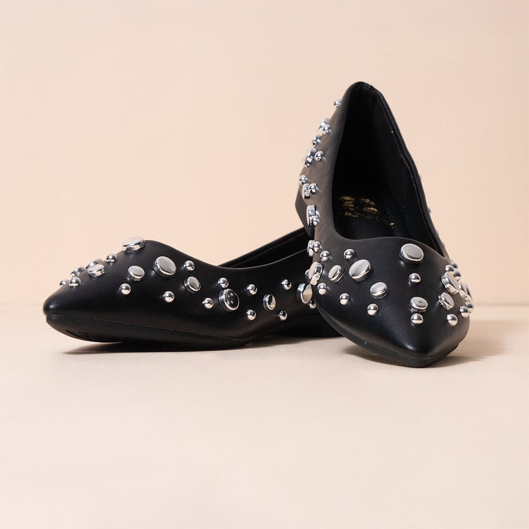 The Dorothy Belly Shoes combine comfort with edgy style, featuring a classic belly design enhanced with metallic studs. Available in black and beige, these flats are perfect for daily wear, office looks, or casual outings. Lightweight and versatile, they offer the perfect mix of trend and comfort for all-day wear.