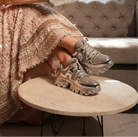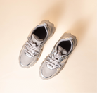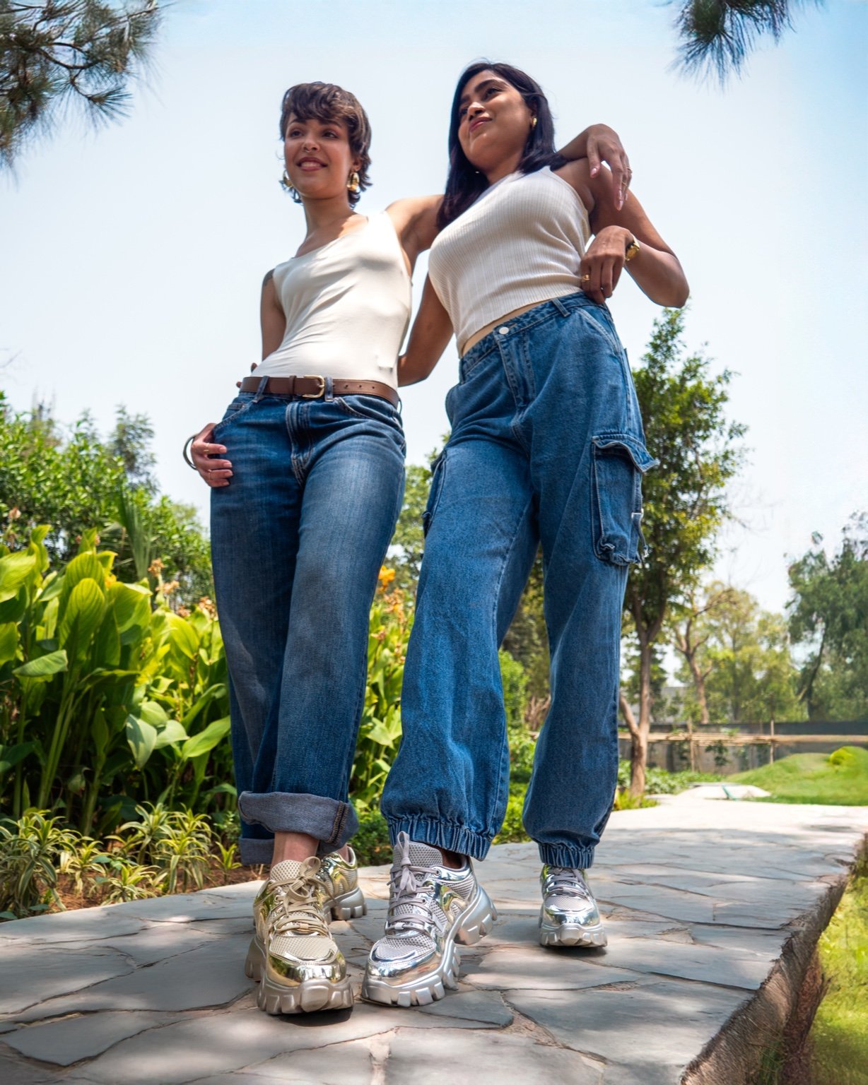 The Nugget Sport Shoes redefine sporty glam with their striking metallic finish in gold and silver. Featuring a chunky sculpted sole and breathable mesh, they combine comfort with a futuristic edge. Perfect for parties, concerts, or street-style looks, these sneakers bring bold energy to casual and festive outfits alike. Pair them with dresses, ethnic wear, or athleisure for standout style.