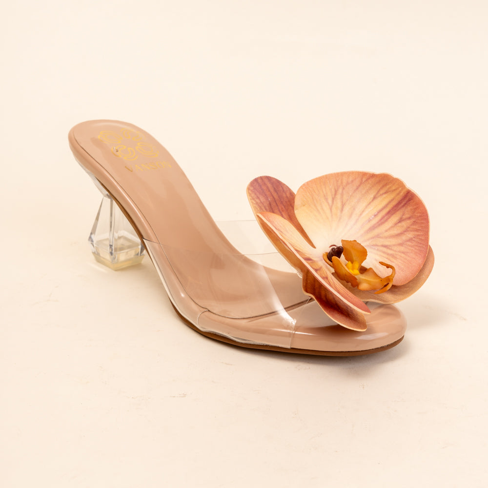 The Orchid Bloom heels are Vanson’s signature statement piece — a fusion of sculptural florals and modern minimalism. Set on a nude-pink base, the clear strap lets the handcrafted orchid flower take center stage, creating a striking 3D illusion that feels both ethereal and powerful. With a transparent heel and lightweight PU sole, these heels offer style without sacrificing comfort. Whether styled with sarees, co-ord sets, or cocktail dresses, they make an instant fashion statement — perfect for those who love a touch of drama and design flair.