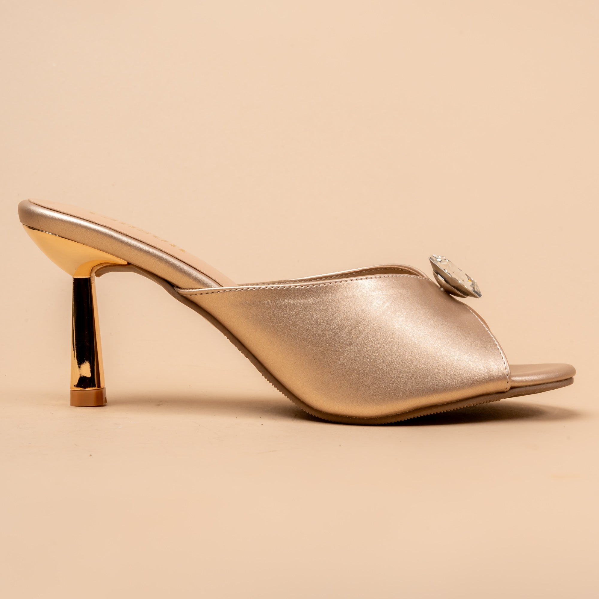 Solitaire Story Matte Gold – Gem Embellished Party Heel