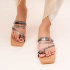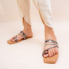 Add a dash of dazzle to every step with Vanson’s Sunlit flats, crafted in luxe gold and Gunmetal PU with shimmering crystal straps that wrap gracefully across the foot. The nude thick cushioned sole ensures all-day comfort, while the sparkling detailing makes these perfect for festive occasions, weddings, and celebrations. A must-have for anyone who loves understated glam with maximum impact. Wear it with ethnic, traditional or even dresses.