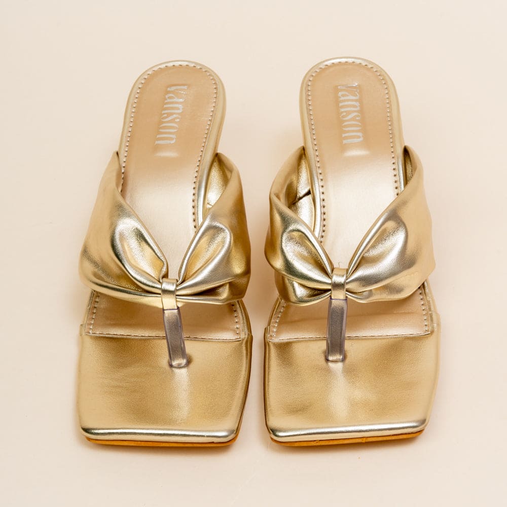 The Venus Heels by Vanson combine architectural form with timeless style. Crafted in rich shine and tones of black and Gold. These slip-on heels bring a hint of power dressing to every step. The soft padded sole ensures comfort, while the sculpted upper adds volume and sophistication — perfect for both formal and weekday looks.