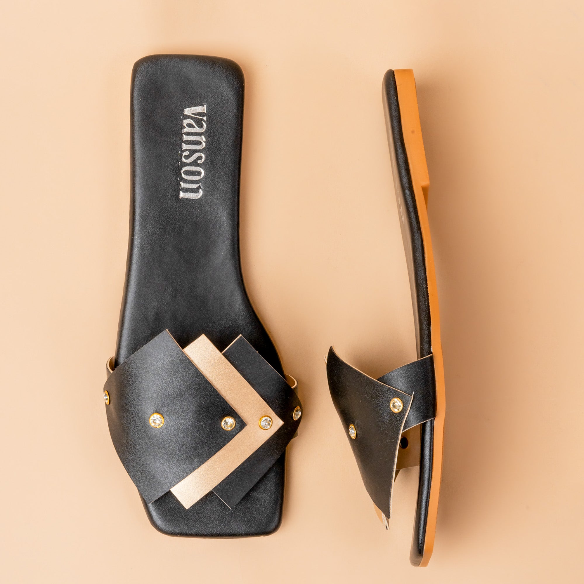 Ace is a refined everyday slide crafted for effortless style and all-day comfort. Featuring a clean black and white upper with understated gold detailing, this design brings a sharp, modern edge to minimal footwear.The structured strap provides a secure fit, while the cushioned footbed ensures ease through long hours of wear. Its versatile colour palette makes Ace an easy match for workwear, smart casual outfits, and relaxed weekend looks.Designed for women who appreciate clean lines and quiet sophistication, Ace is a wardrobe essential that transitions seamlessly from office to off-duty.