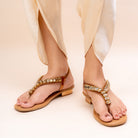 A pair designed to bring subtle glamour to your daily wear. Featuring a slender T-strap lined with glimmering square cut stones, these sandals blend contemporary design with timeless comfort.