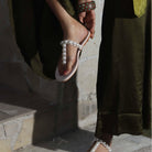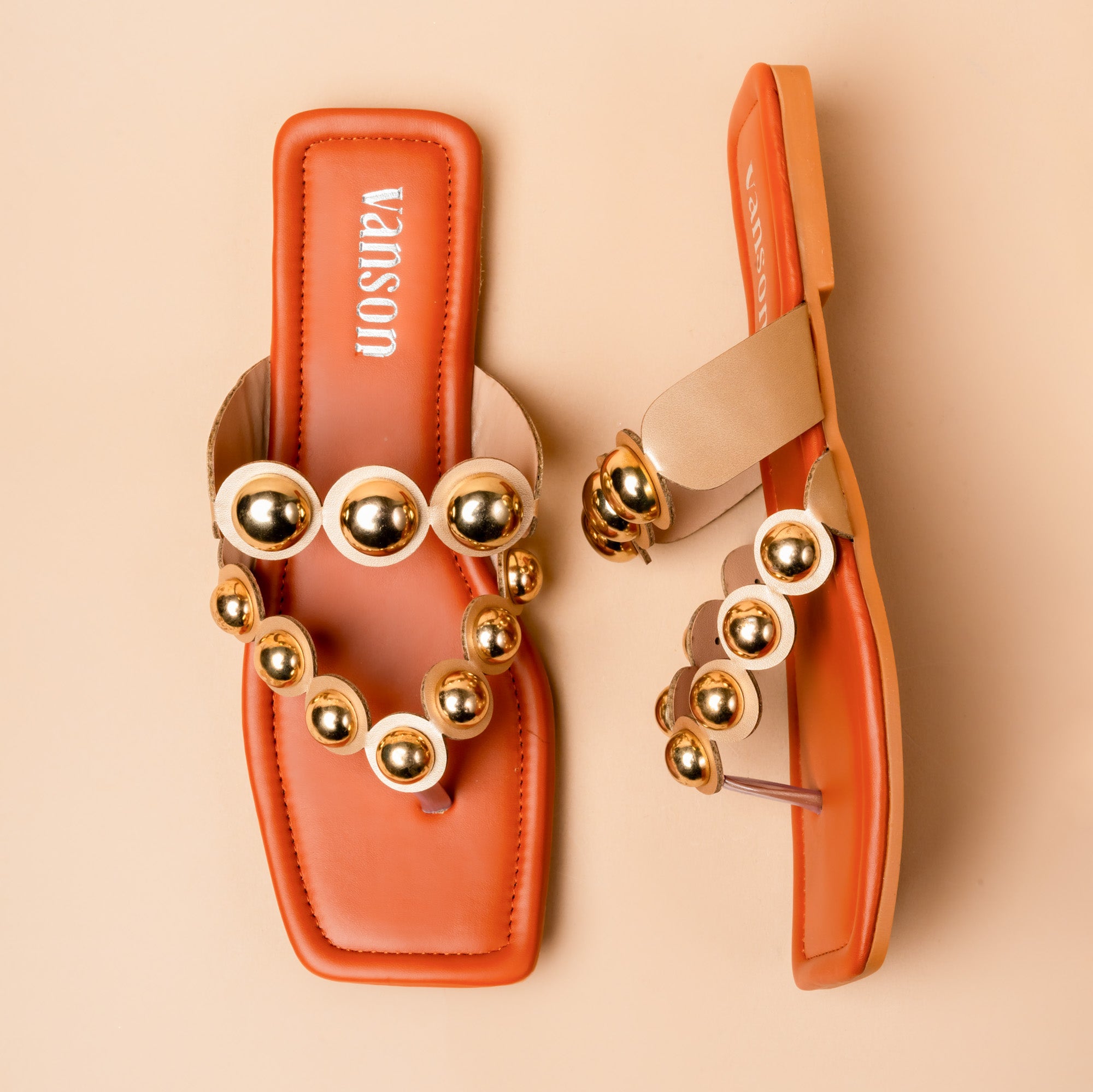 Apricots- the ultimate feminine power. Nude & Cream Pearl Flats by Vanson bring elegance and comfort together effortlessly. Featuring a soft nude base and cream-toned pearl detailing, this pair adds a subtle yet sophisticated charm to your look. Lightweight and versatile, they transition seamlessly from brunch dates to festive evenings. The cushioned sole offers all-day ease, making them your perfect pick for understated glamour.