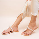 Apricot Pearl Embellished Flat Slippers