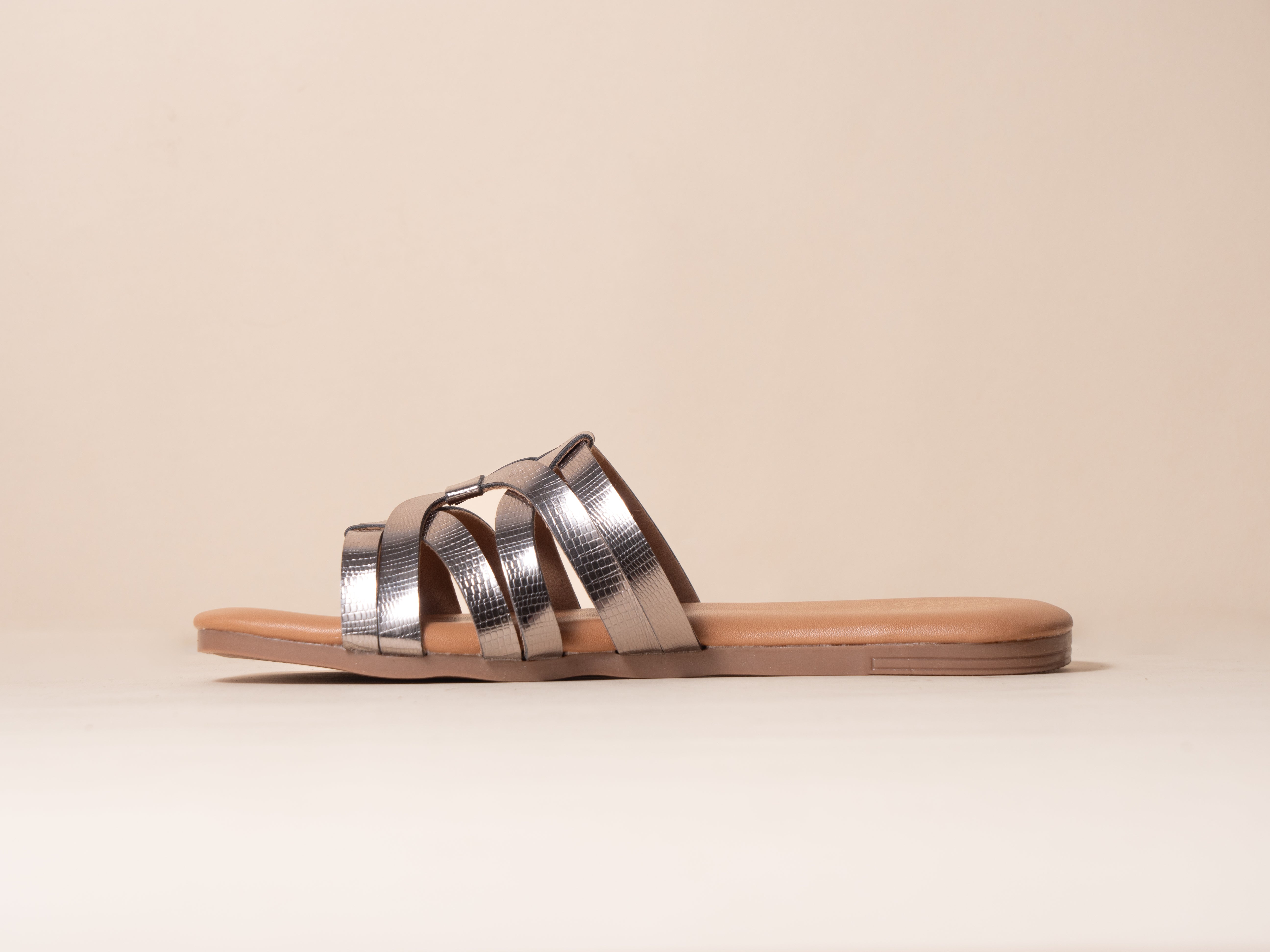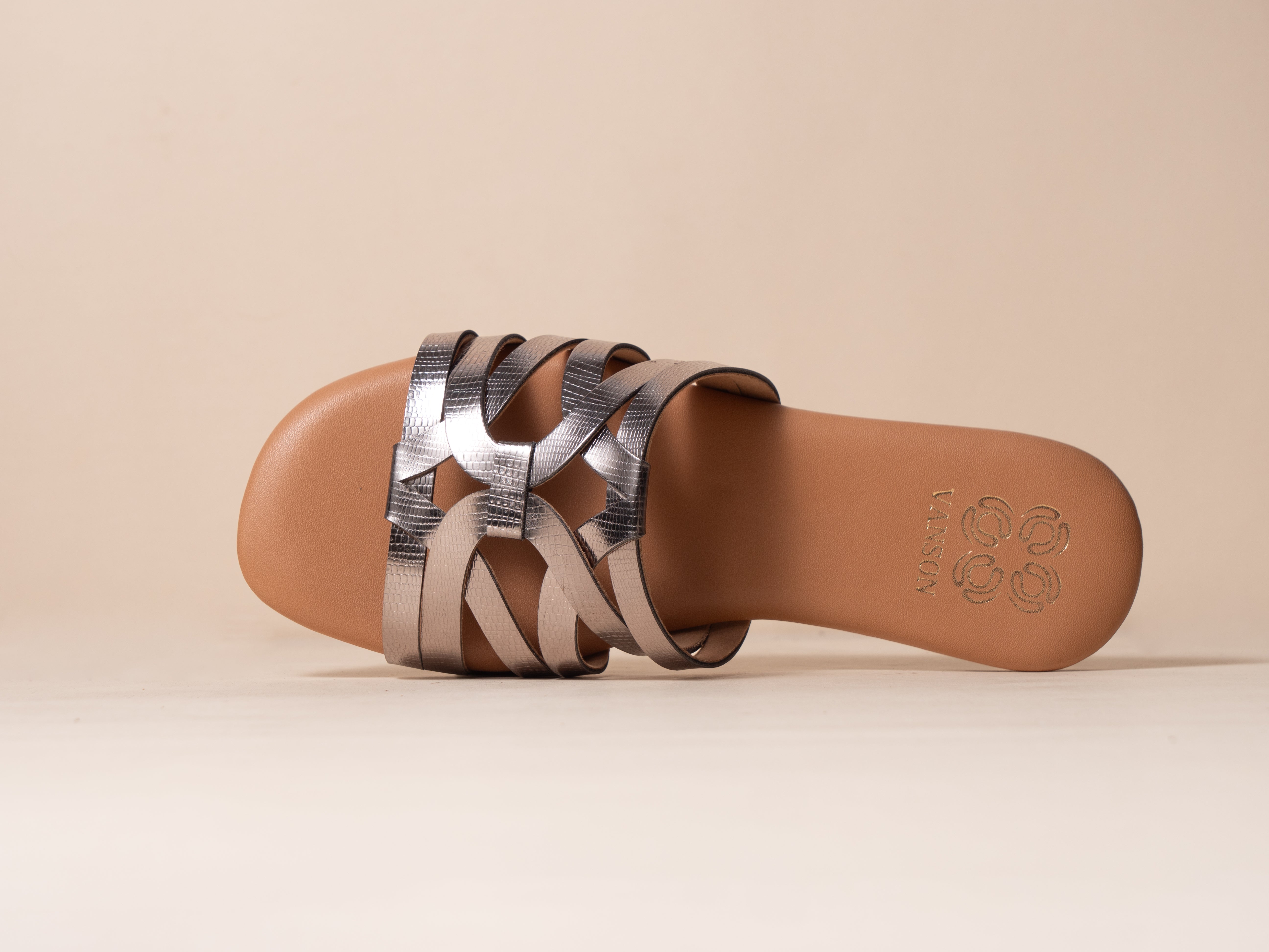 Bese Saka by Vanson redefine glam comfort. Crafted with shimmering gold PU and intricate laser-cut detailing, these flats showcase an architectural pattern that wraps beautifully around your feet. Designed for both style and ease, they’re feather-light and versatile — perfect for festive occasions, weddings, brunches, and evenings out. The cushioned sole ensures day-long comfort while the metallic texture adds a bold, designer touch. Pair them with sarees, fusion wear, or denims for an effortlessly chic look.