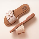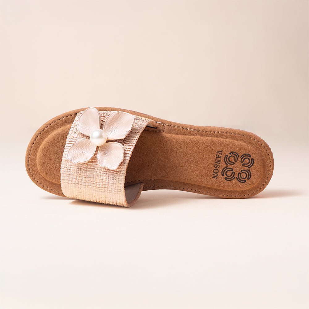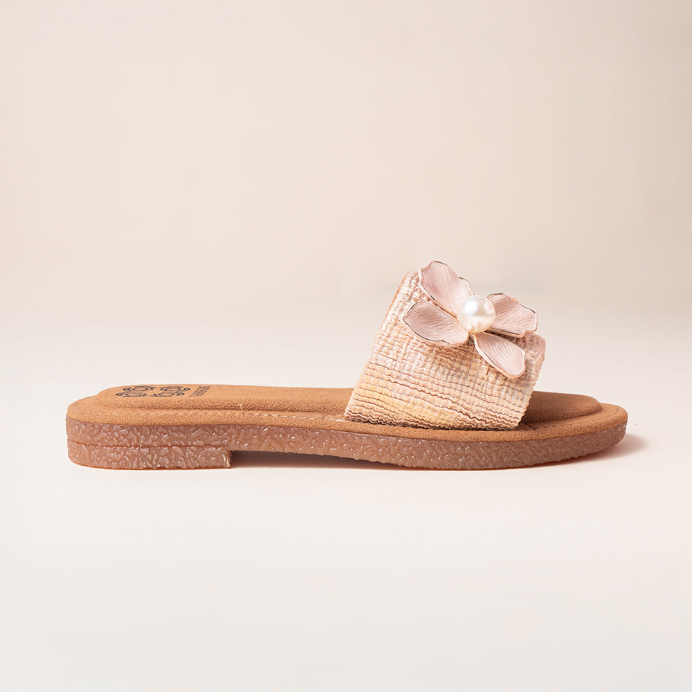 The Petal Pearl Flats bring a soft, feminine touch with their textured beige strap topped with a sturdy metal flower and pearl detail. High on comfort as the sole is flexible, making it apt for home wear for daily chores. Lightweight and versatile, they are perfect for brunches, festive daywear, or casual outings. Comfortable yet chic, these flats pair beautifully with dresses, skirts, or ethnic wear for an effortlessly elegant look.