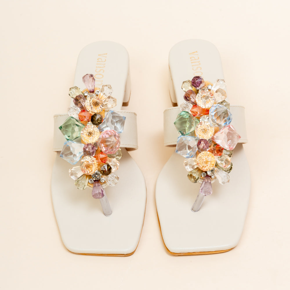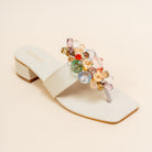 The Crystal Pop heels are where elegance meets play. Designed in a soft champagne-gold tone, these slip-ons are crowned with iridescent crystal clusters that catch every flicker of light. Each crystal is hand-set to create a vibrant burst of colour, making the pair both glamorous and effortlessly wearable.