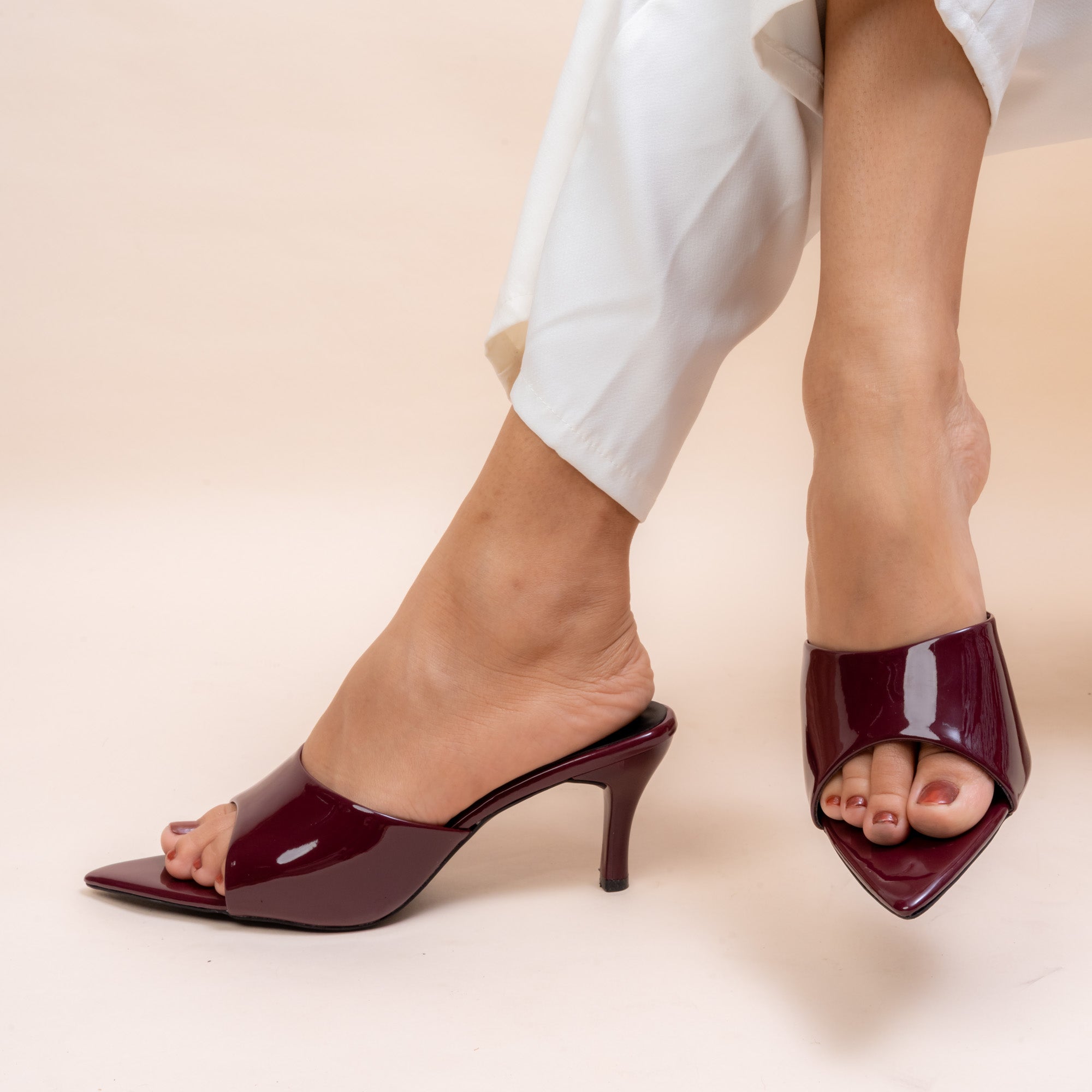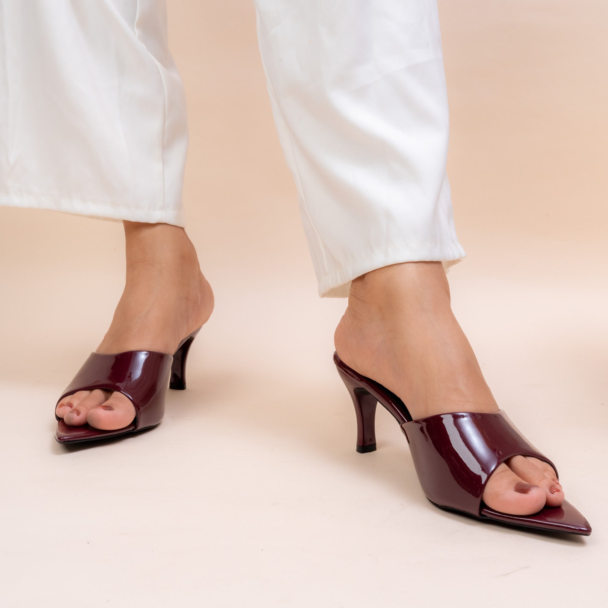 The Devil Dance pointed heels bring effortless polish to every step. Designed with a sharp pointed toe and wide patent strap, this slip-on style adds instant sophistication to any look. The mid-height block heel ensures steady comfort while maintaining an elongated, elegant silhouette. Available in Maroon and Black, these heels pair beautifully with tailored trousers, satin skirts, or evening dresses — ideal for work dinners, parties, or chic everyday wear.