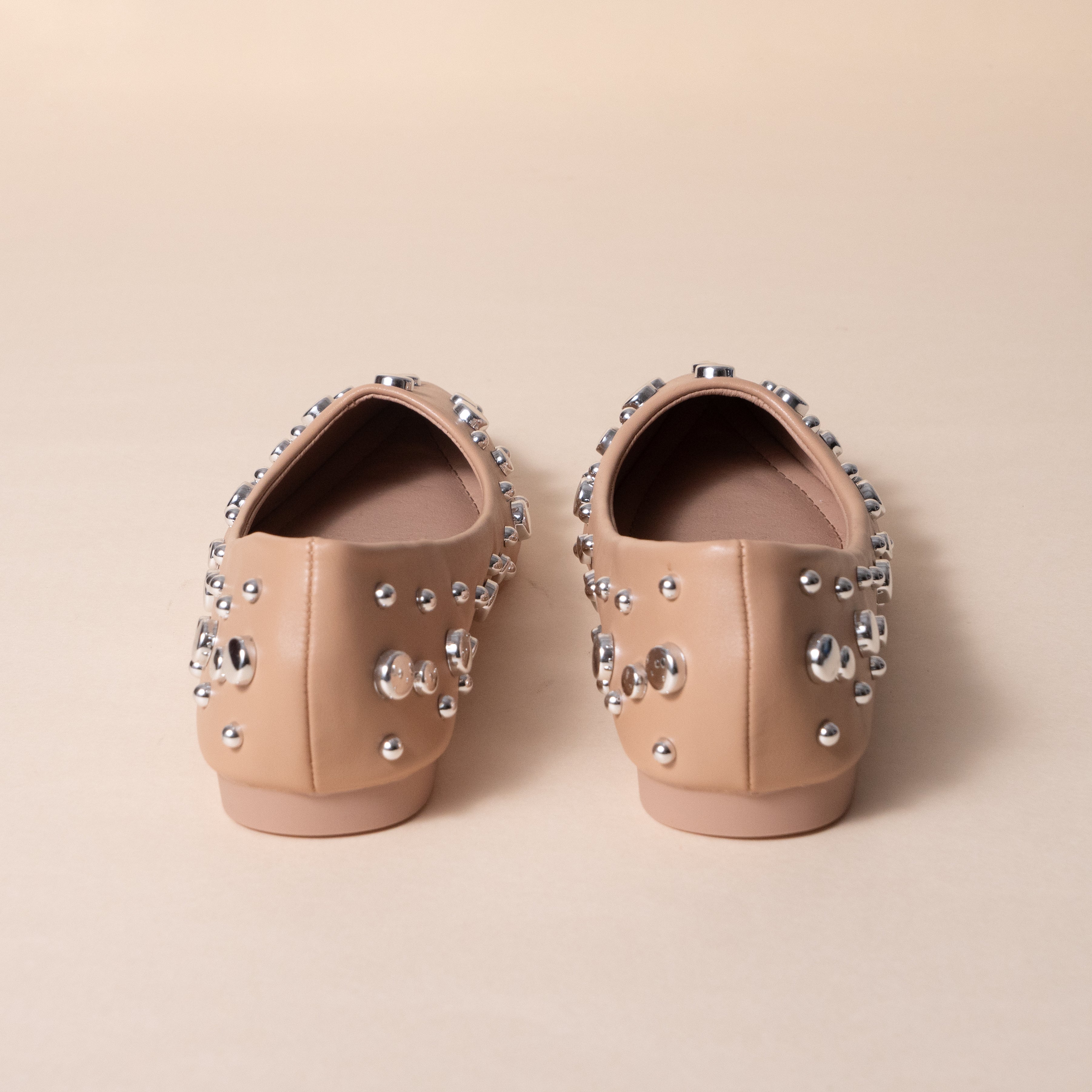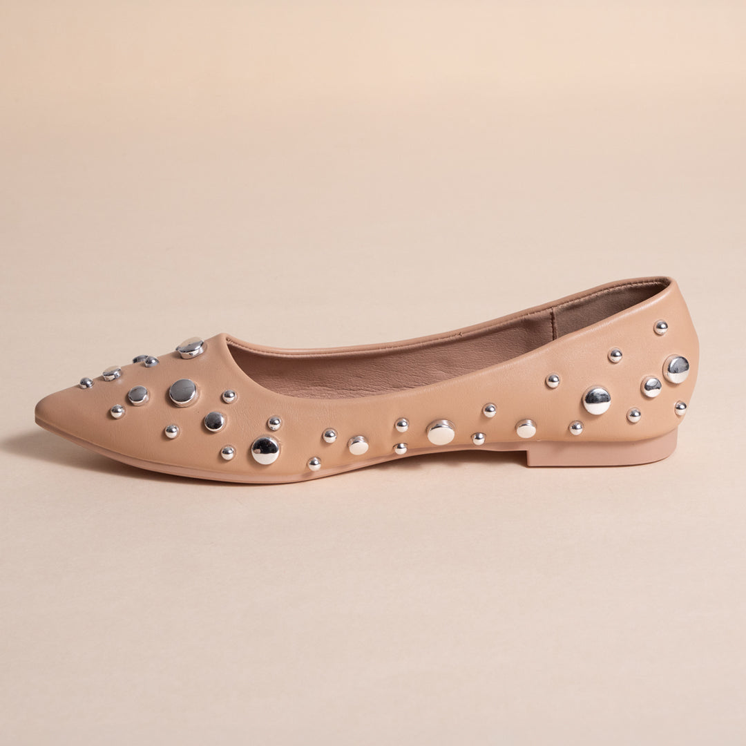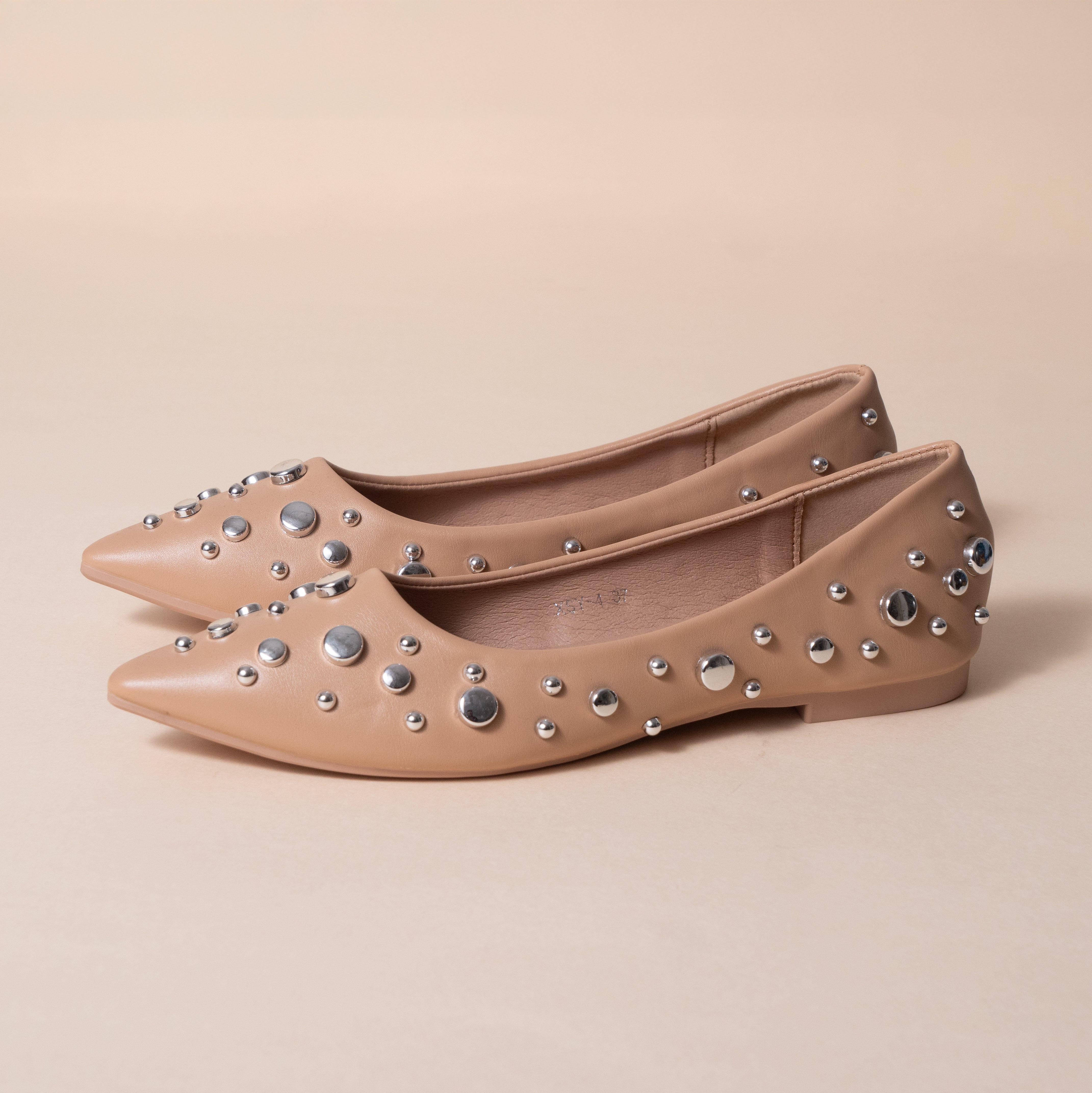 The Dorothy Belly Shoes combine comfort with edgy style, featuring a classic belly design enhanced with metallic studs. Available in black and beige, these flats are perfect for daily wear, office looks, or casual outings. Lightweight and versatile, they offer the perfect mix of trend and comfort for all-day wear.