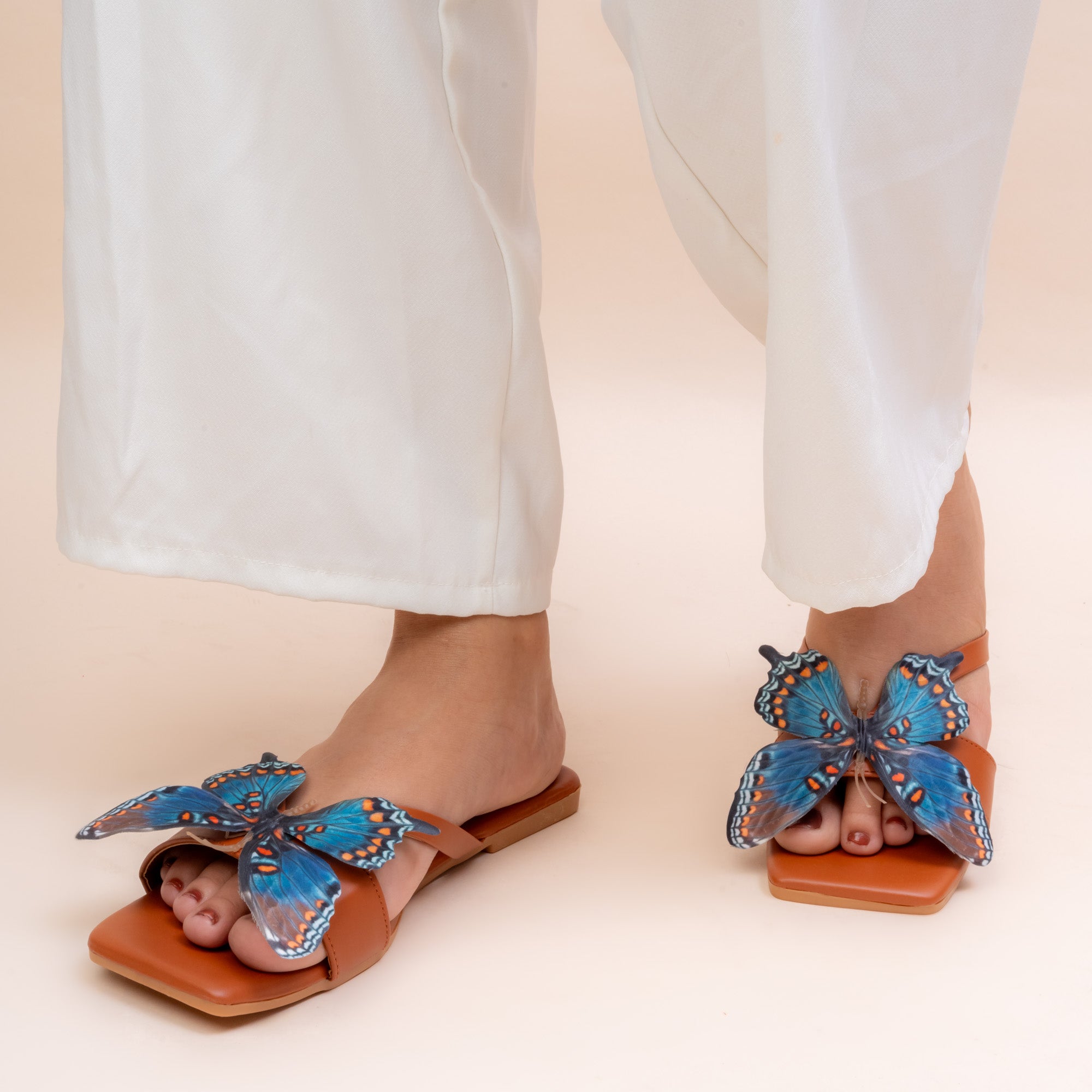 Bring whimsical charm to your step with Vanson’s Flutter Flats, a blend of art and fashion. The black base is accented with a stunning 3D purple hot pink butterfly that adds a dreamy, statement touch. Another variation of a green blue realistic flutter on classic tan base. Ideal for fashion lovers who enjoy playful details, these sandals pair beautifully with flowy dresses, skirts, or even denims for an enchanting twist.