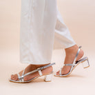 Meet Aurora, the ultimate stiletto from Vanson that combines minimal design with a touch of sparkle. Crafted in silver and gold mirror metallics, these heels feature slender straps front band for a leg-lengthening illusion. The block heel adds a couture touch, making it ideal for evening soirées or festive glam.