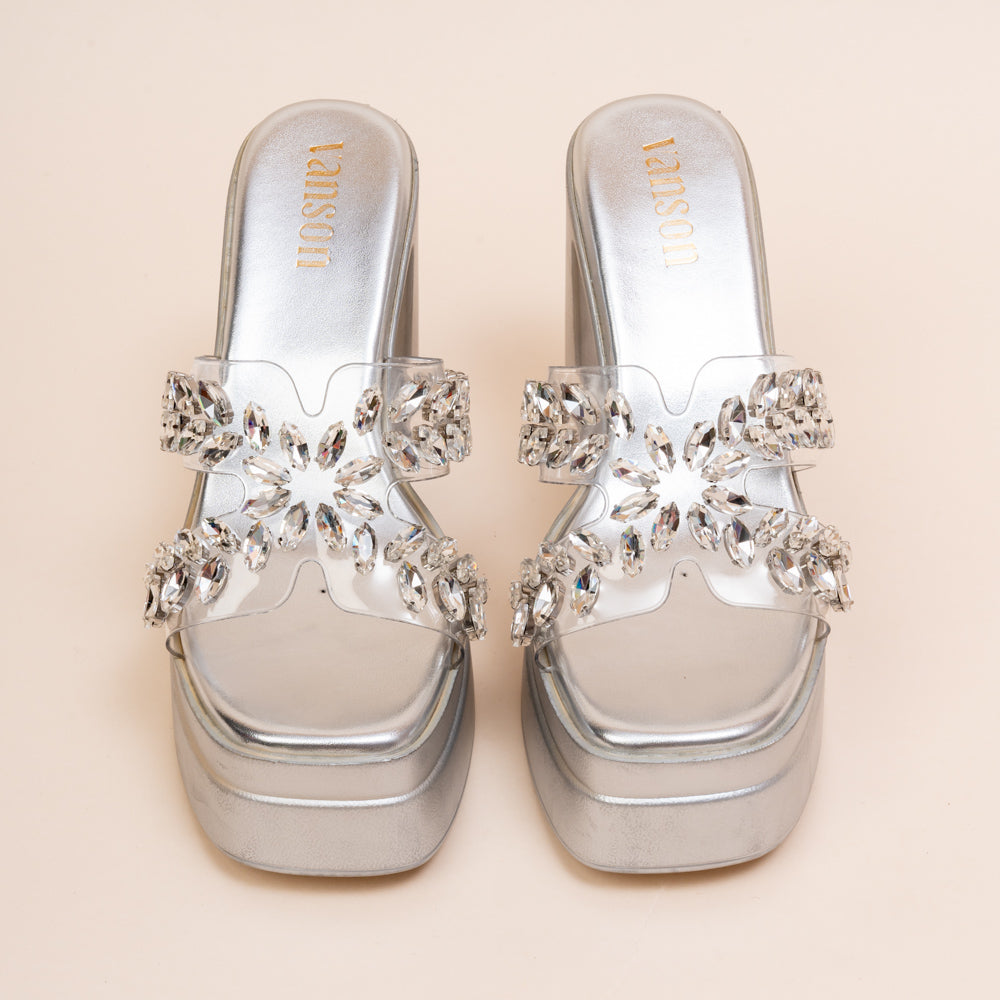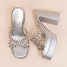 The Laurel Platform Heels by Vanson are your go-to for red-carpet drama. The transparent upper blooms with golden crystal petals, set atop a satin-finish gold platform base that adds instant height and glam. The light weight chunky TPR sole provides ultimate comfort with added long height. Despite the elevation, the cushioned footbed keeps you comfortable through hours of dancing. Perfect for brides, cocktail nights, and festive celebrations, these heels sparkle from every angle.