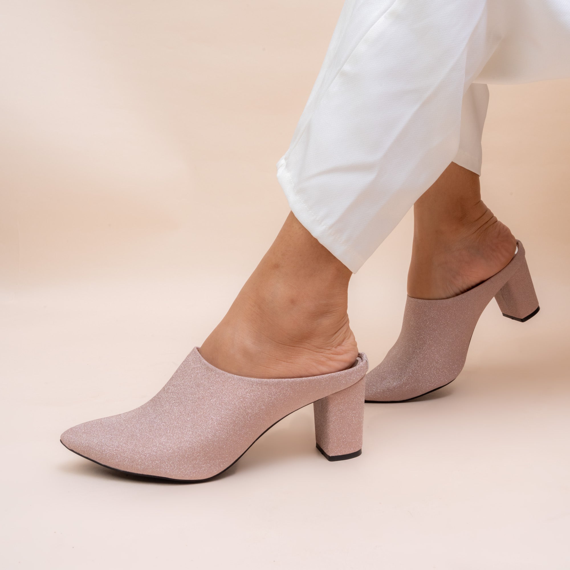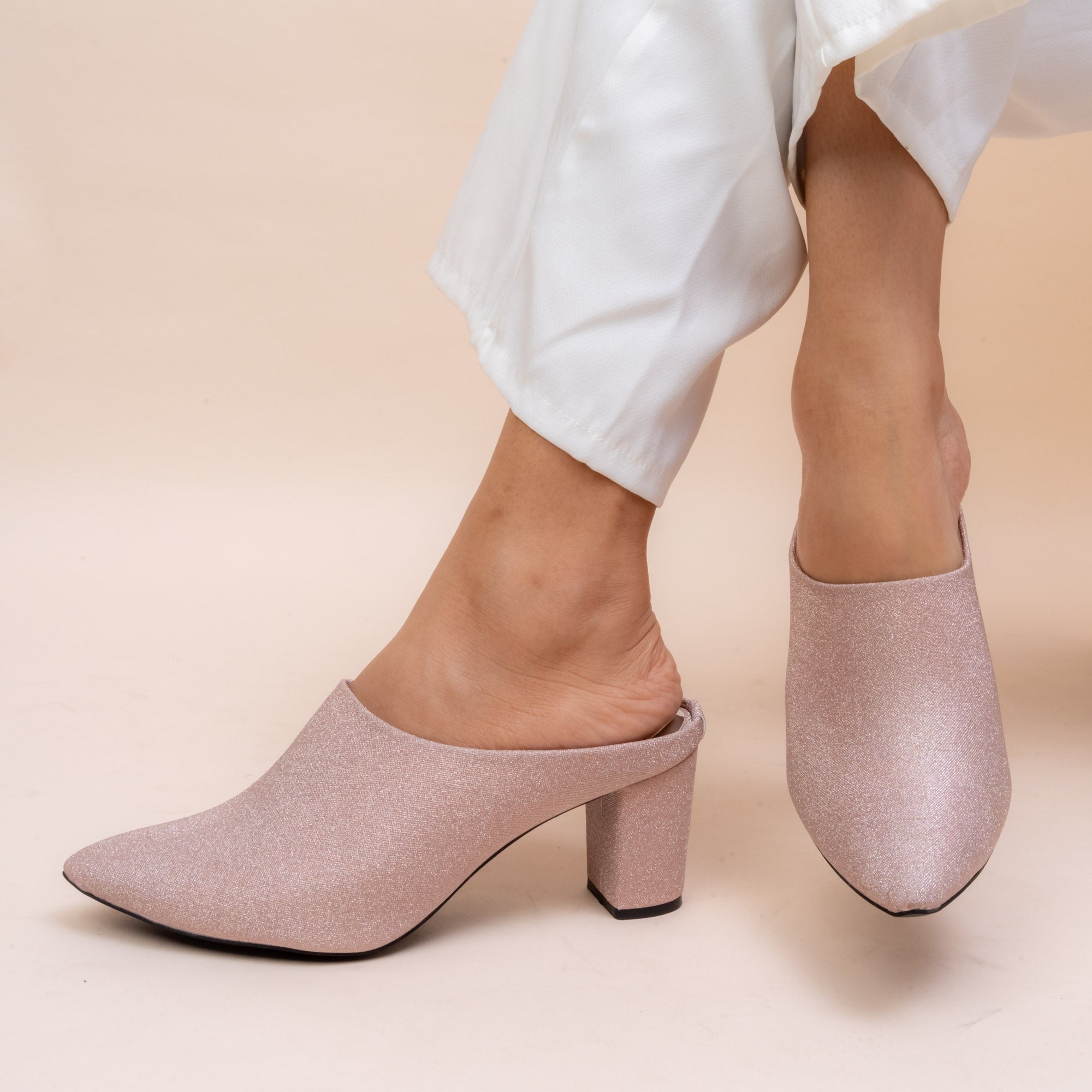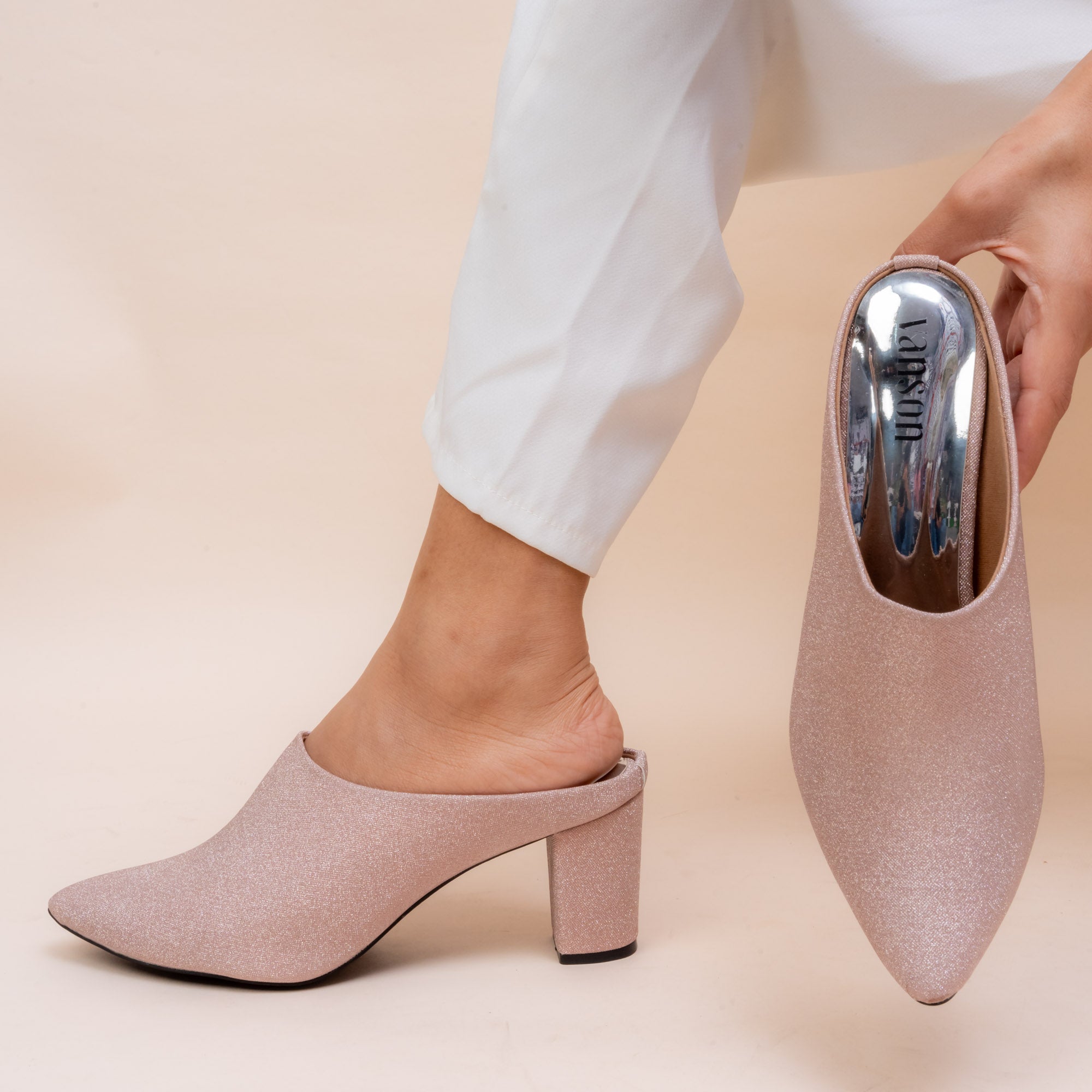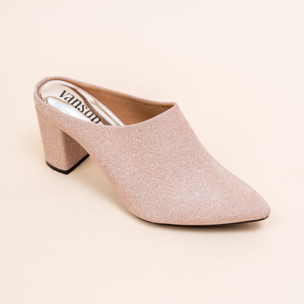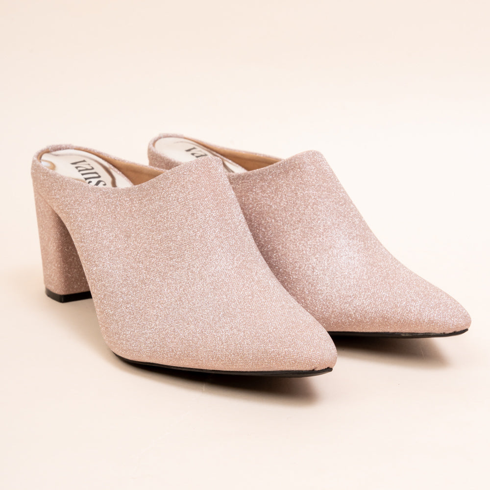 Shimmer all evening in Vanson’s Lit Lara Glitter Block Mules. Crafted in soft champagne and Silver tones with a fine eye catching glittered finish, these pointed-toe mules add refined sparkle to any outfit. The supportive block heel makes them perfect for long celebrations or elegant evenings. Best for winter fashion for an ultra modern look