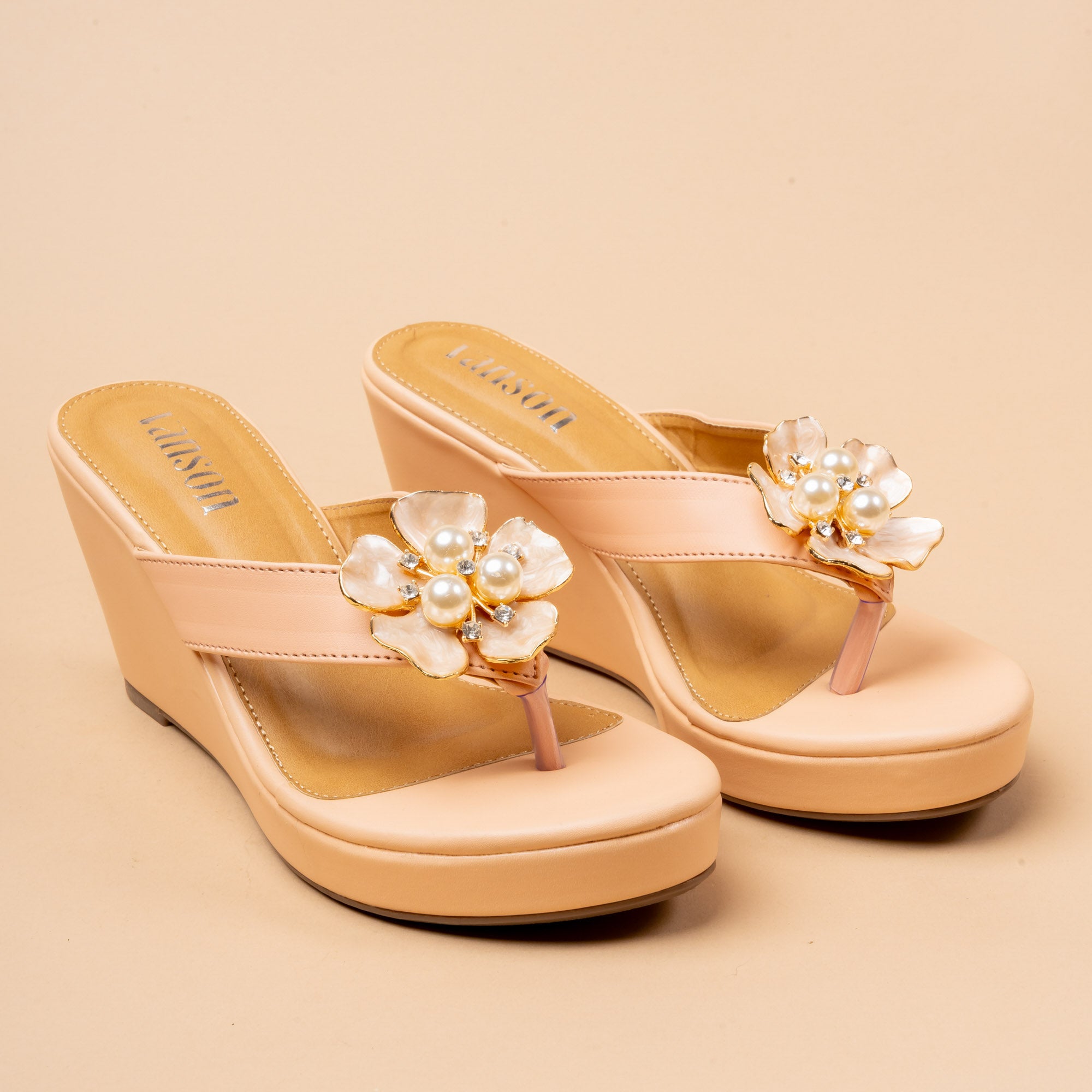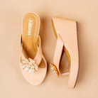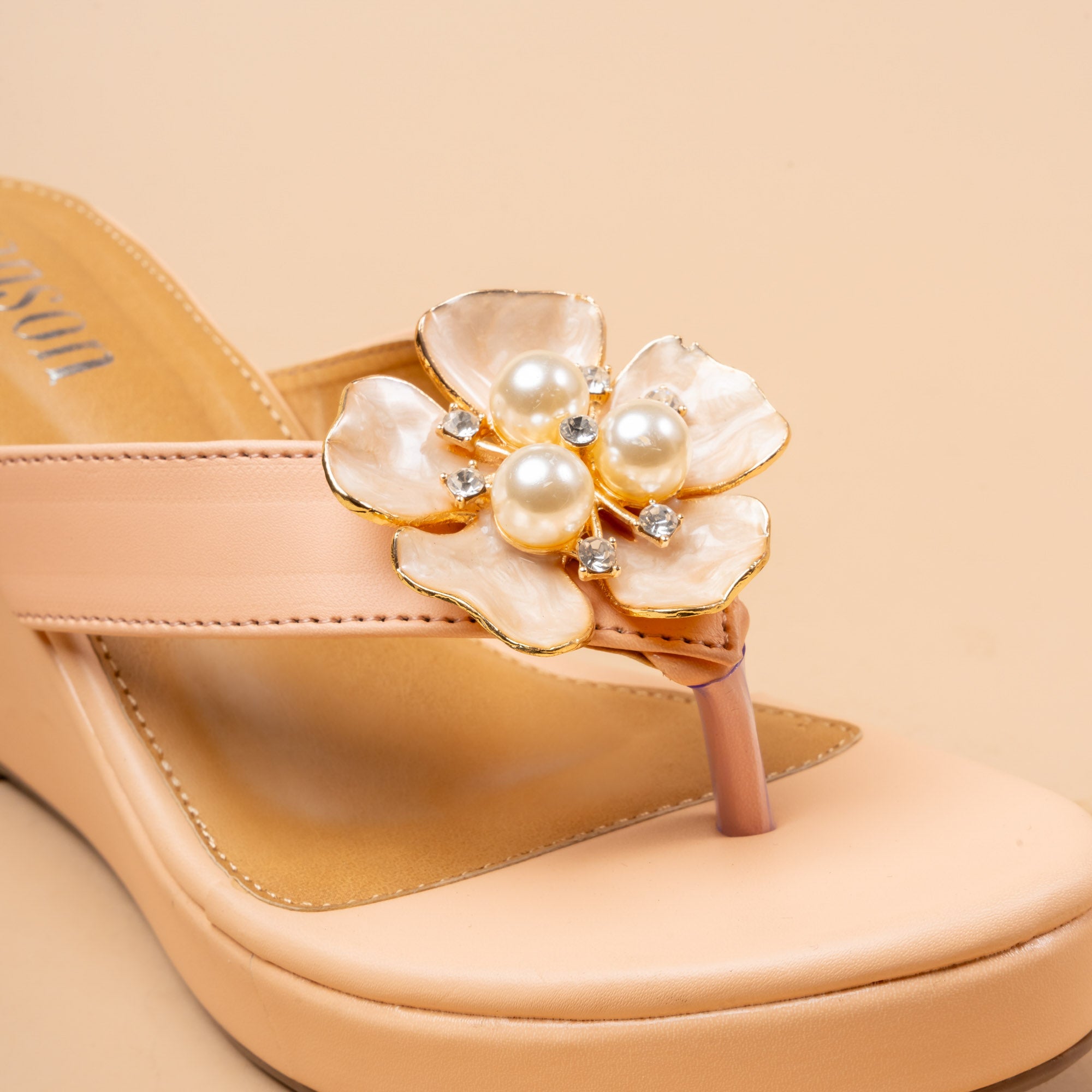 Inspired by the quiet luxury of magnolia flowers, Magnolia is a refined platform wedge that blends softness with structure. Crafted in a creamy ivory tone, the design features a sculptural floral appliqué with delicate pearl accents, creating a subtle statement that feels feminine yet modern.The lightweight platform wedge offers comfortable elevation, making it ideal for long wear — from daytime festivities to intimate celebrations. Clean lines, cushioned soles, and a balanced silhouette ensure Magnolia remains graceful, wearable, and timeless.Perfect for modern Indian wear, brunch looks, festive gatherings, or understated bridal moments, Magnolia embodies Vanson’s signature elegance with a fresh, contemporary soul.