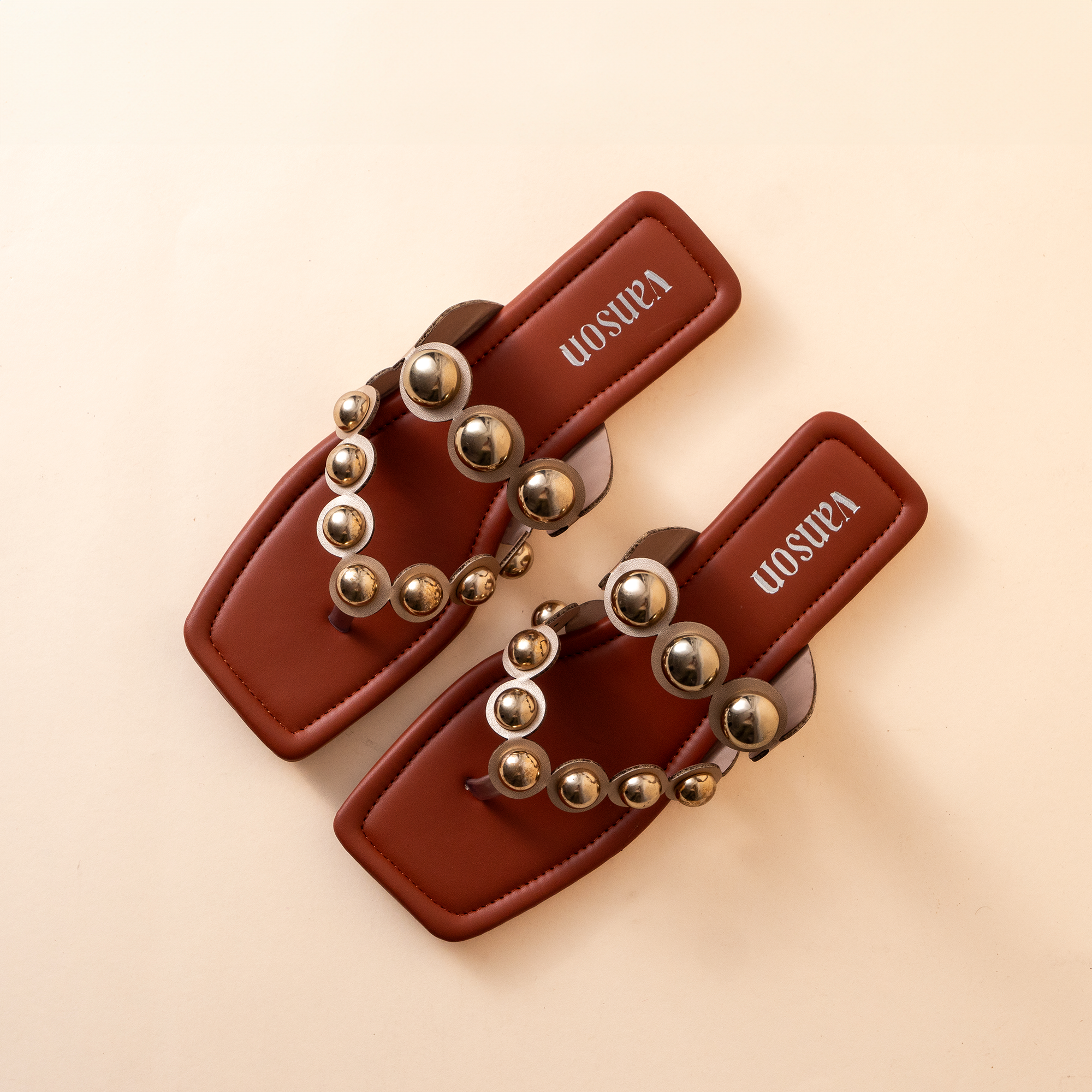 Add a luxe edge to your wardrobe with Vanson’s Black & Gold Manuka Flats. Designed with metallic gold spheres on a sleek black strap, these flats strike the perfect balance between edgy and elegant. The cushioned tan sole ensures comfort, while the statement detailing makes them ideal for both festive and casual wear. Whether you’re dressing up an evening outfit or elevating your day look, these flats make every step shine.
