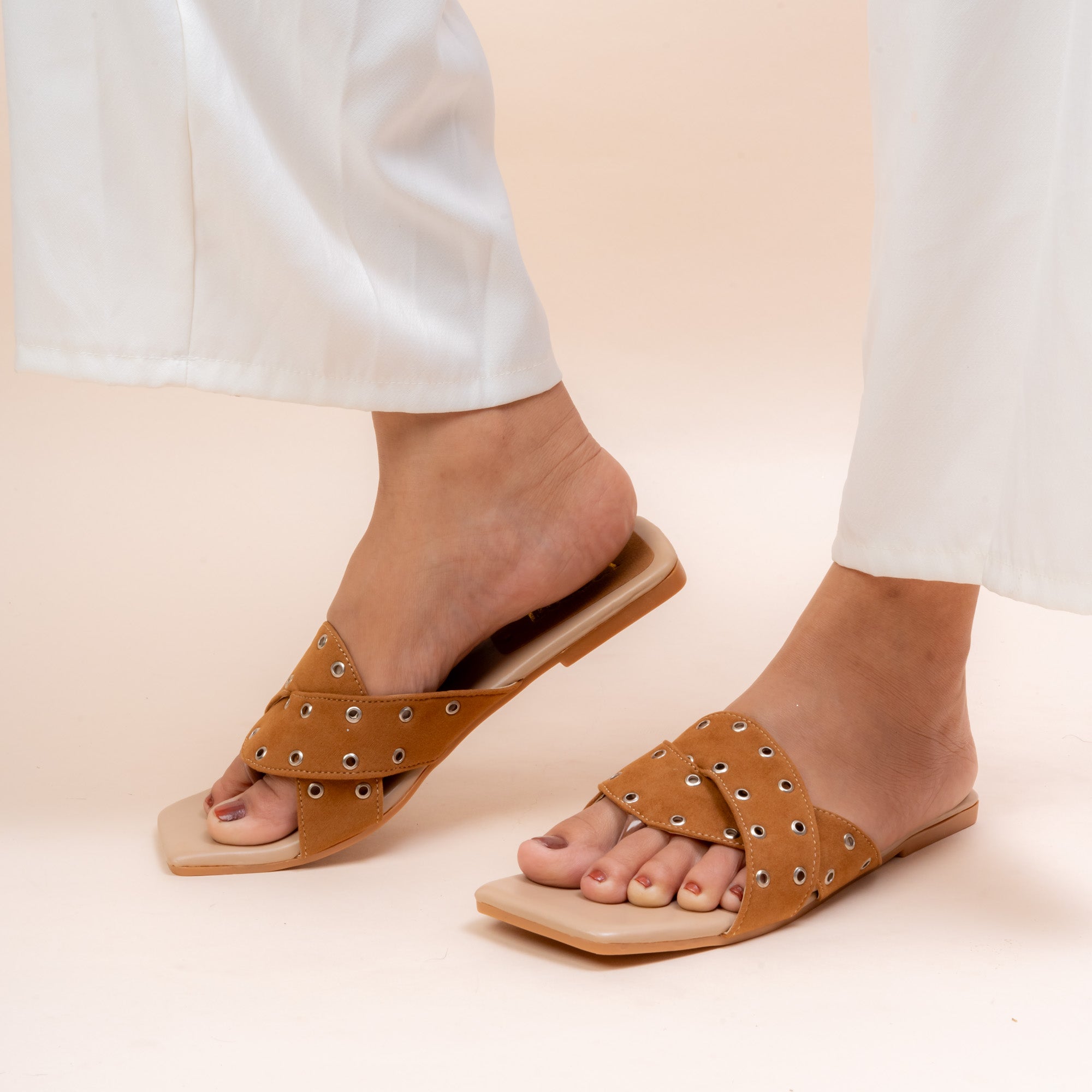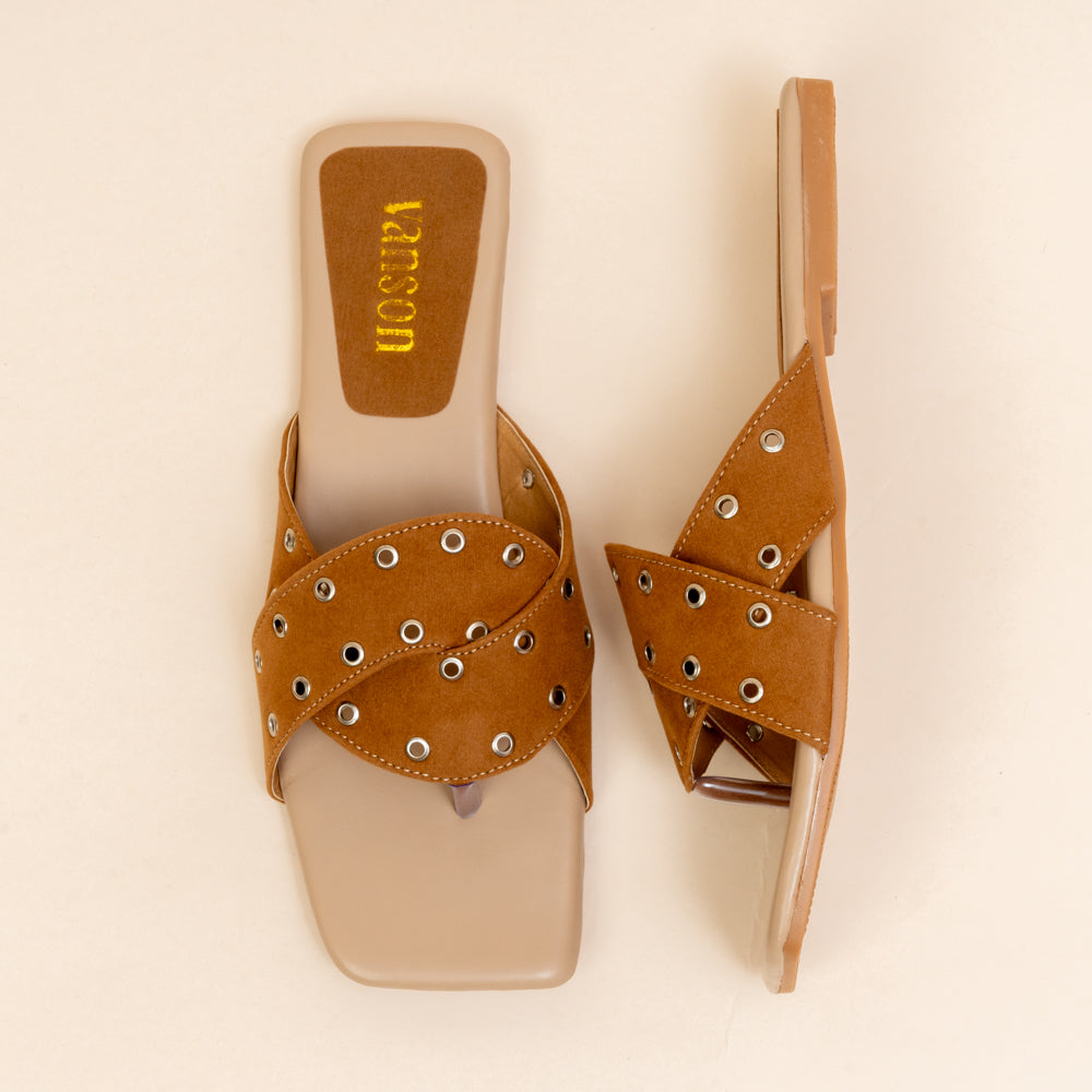 The high on trend Overlap Flats by Vanson bring together elegance, attitude, and all-day comfort. Crafted in plush black suede with silver metallic eyelets, these flats feature a striking oversized bow that adds instant drama to your outfit. The cushioned base and square toe design offer modern comfort, while the neutral beige sole ensures versatility across day-to-night looks. Pair them with denims, dresses, or festive wear — these flats promise to turn heads wherever you go.