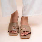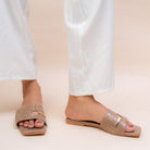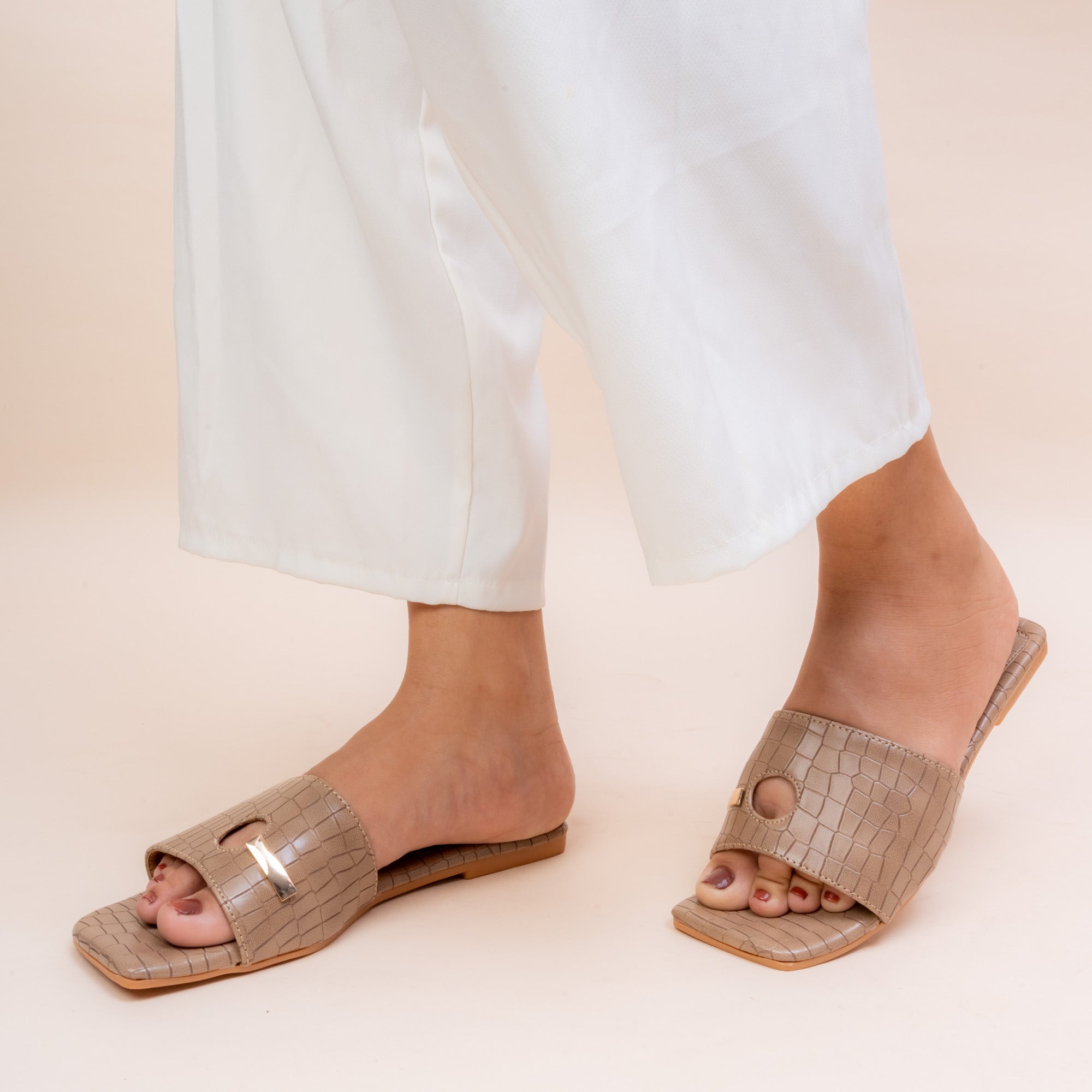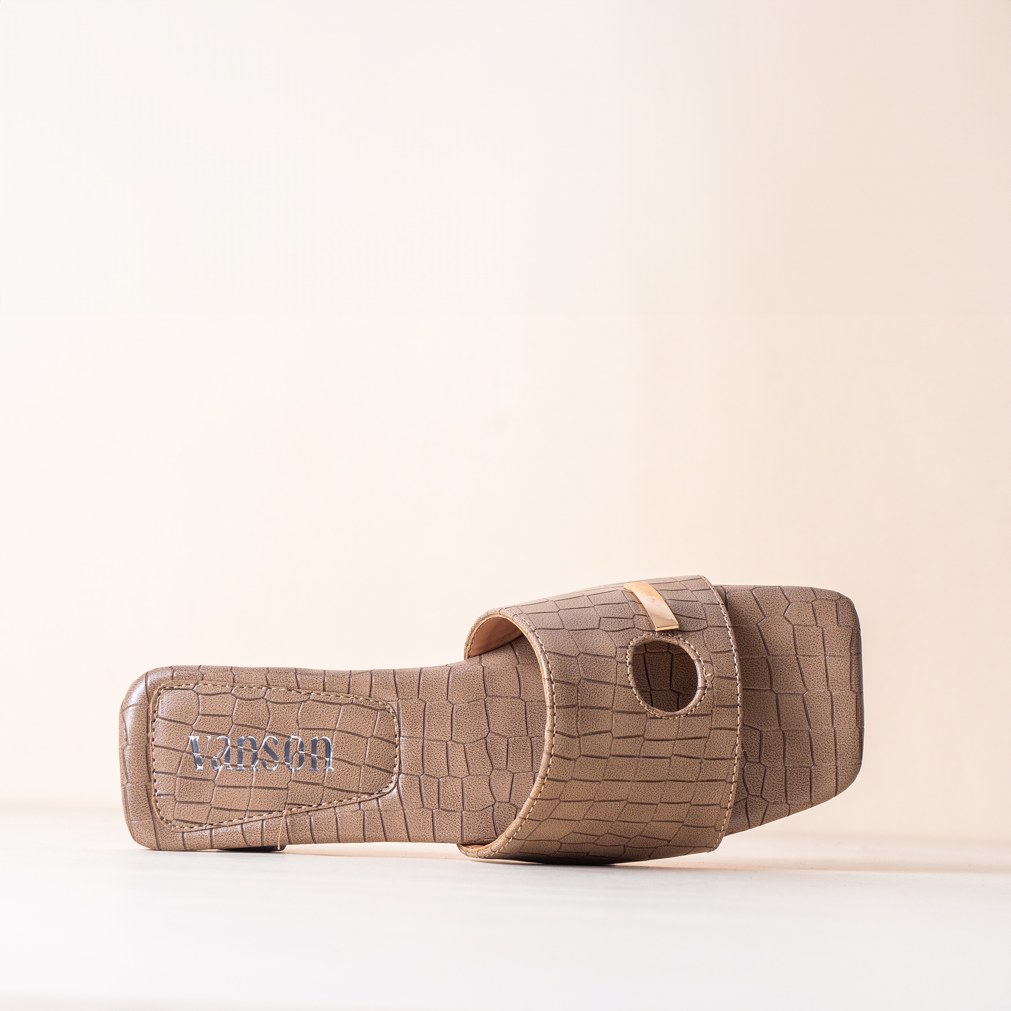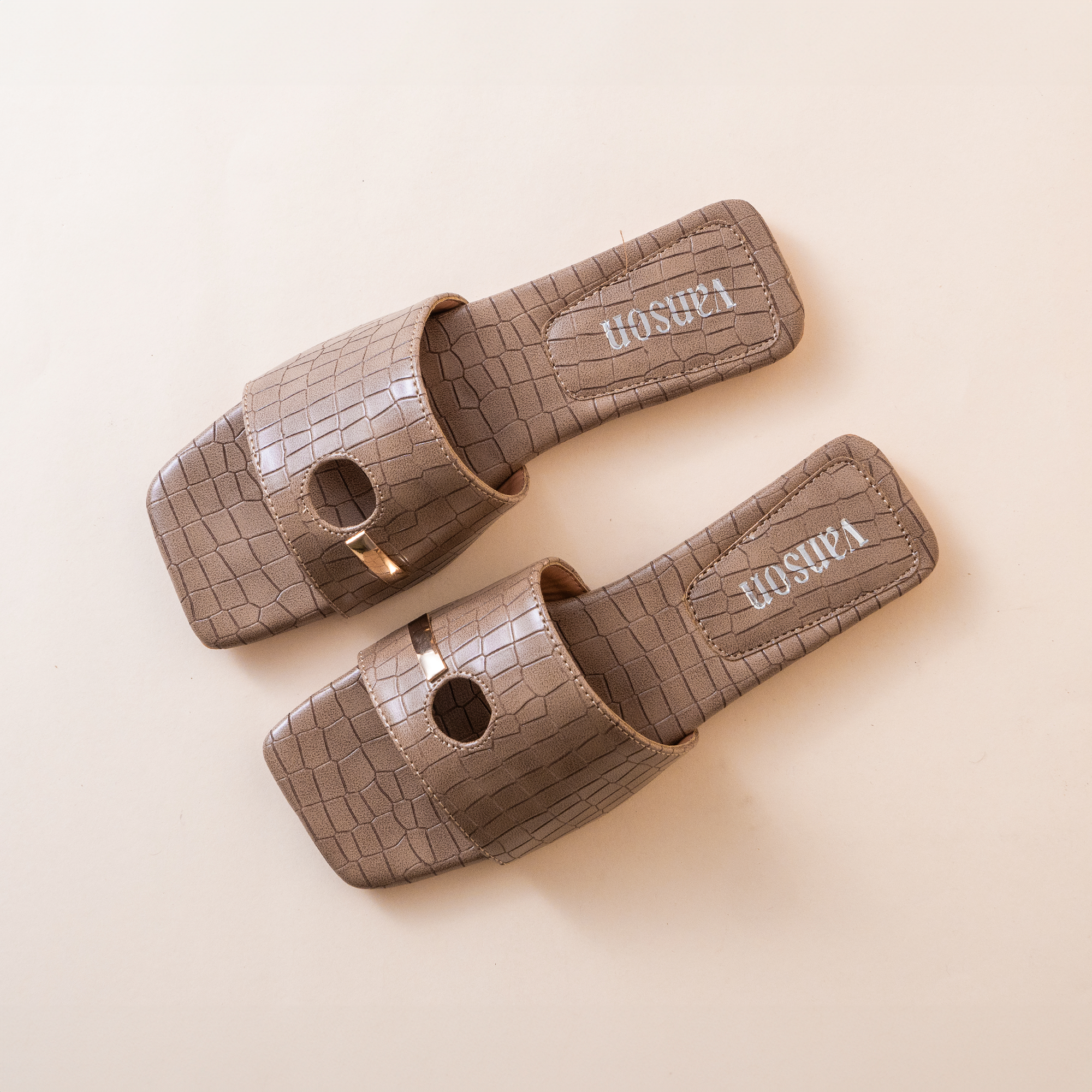 The Santorini Flats from Vanson feature a rich croc-embossed texture paired with sleek golden strap detail. Designed for fashion minimalists with a luxe taste, these flats combine structure and comfort seamlessly. With the circular cut out in the centre, it carves an eccentric style. Ideal for day-to-night transitions, they exude quiet sophistication.