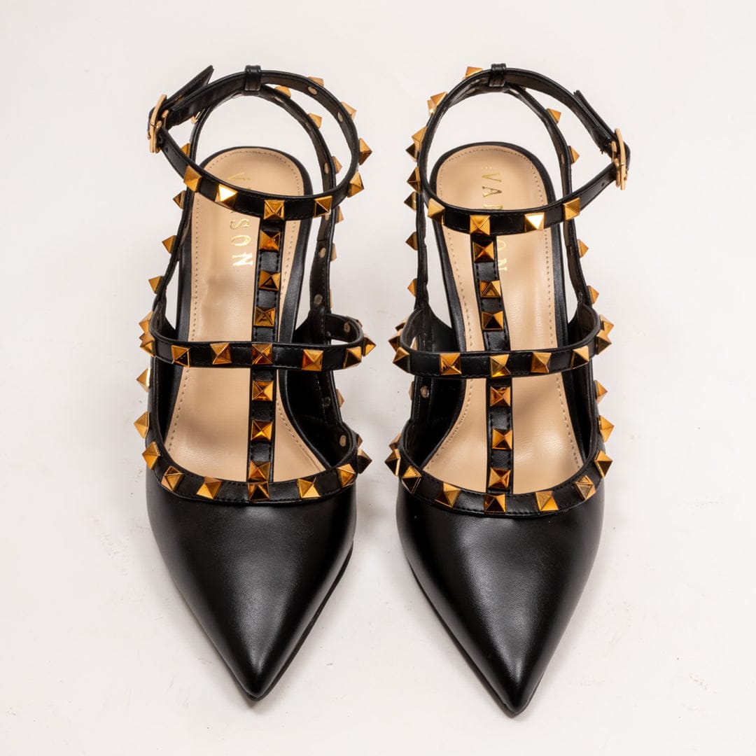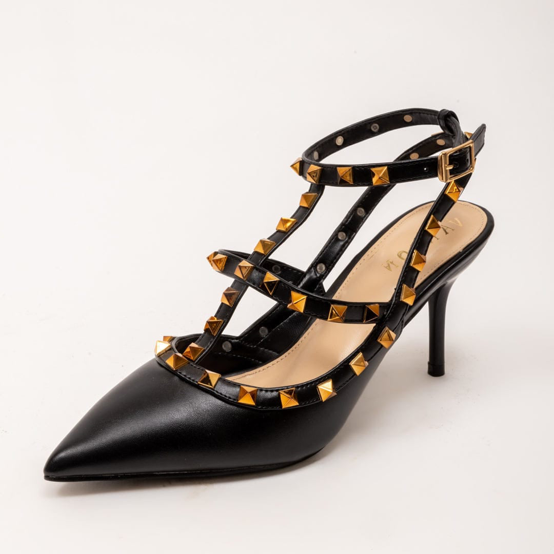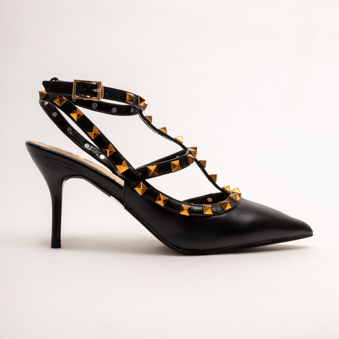 The Tanium Kitten Heels bring a perfect balance of edge and elegance with their pointed-toe silhouette and studded straps. Available in black and nude, these heels are versatile enough for a nine to wine be it formal meetings or night outs. The kitten heel offers style without sacrificing comfort, making them ideal for long evenings on your feet. Pair them with dresses, skirts, or tailored trousers for an effortlessly chic look. Classy pair of must haves in your wardrobe