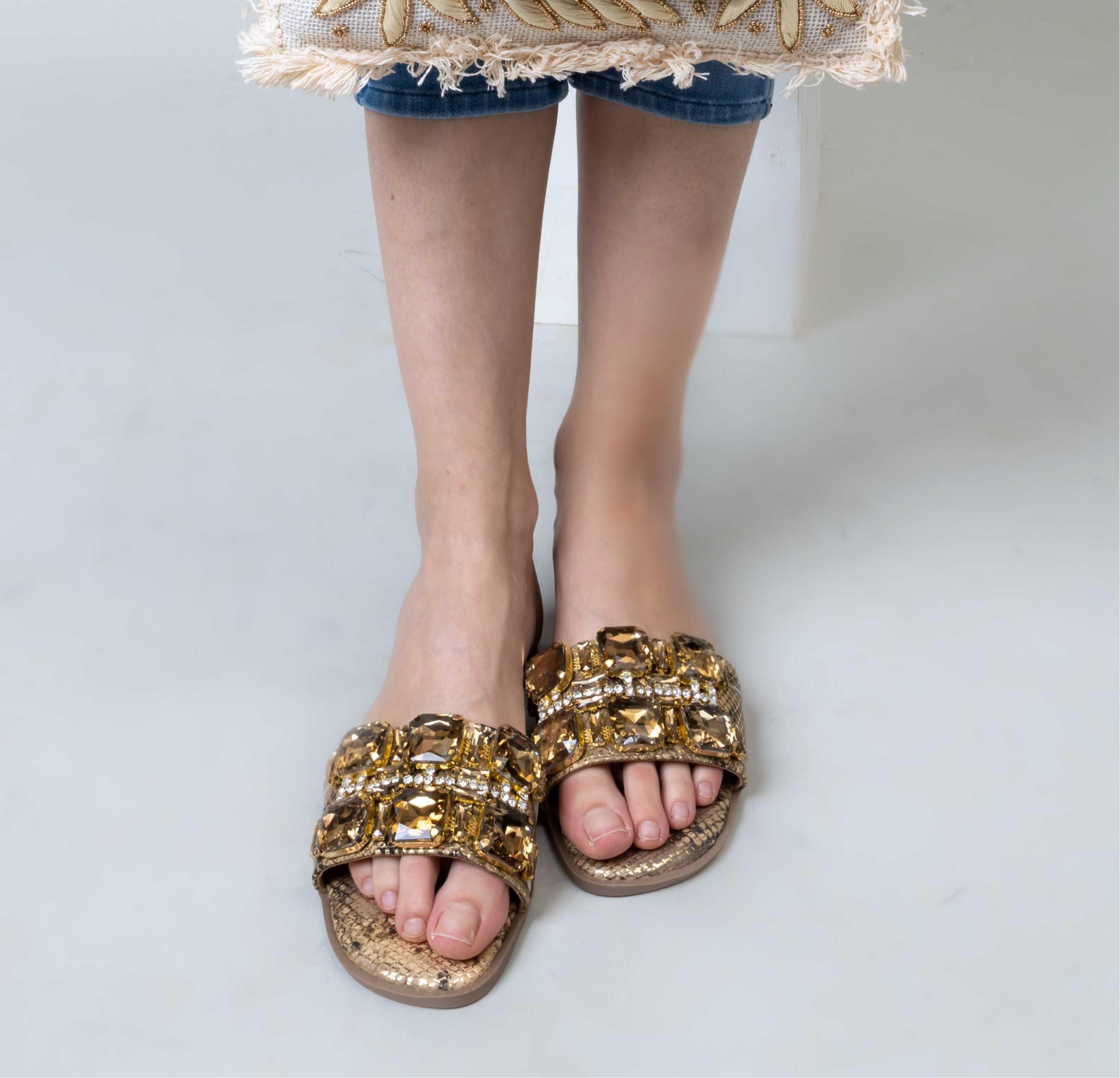 A handcrafted masterpiece that brings couture sparkle to your every step. Set on a sturdy yet lightweight block heel, this statement pair features intricate hand embellishment with crystals, stones, and iridescent beads that shimmer from every angle. The soft cushioned sole ensures effortless comfort, while the elevated platform design adds dramatic height without compromising ease.